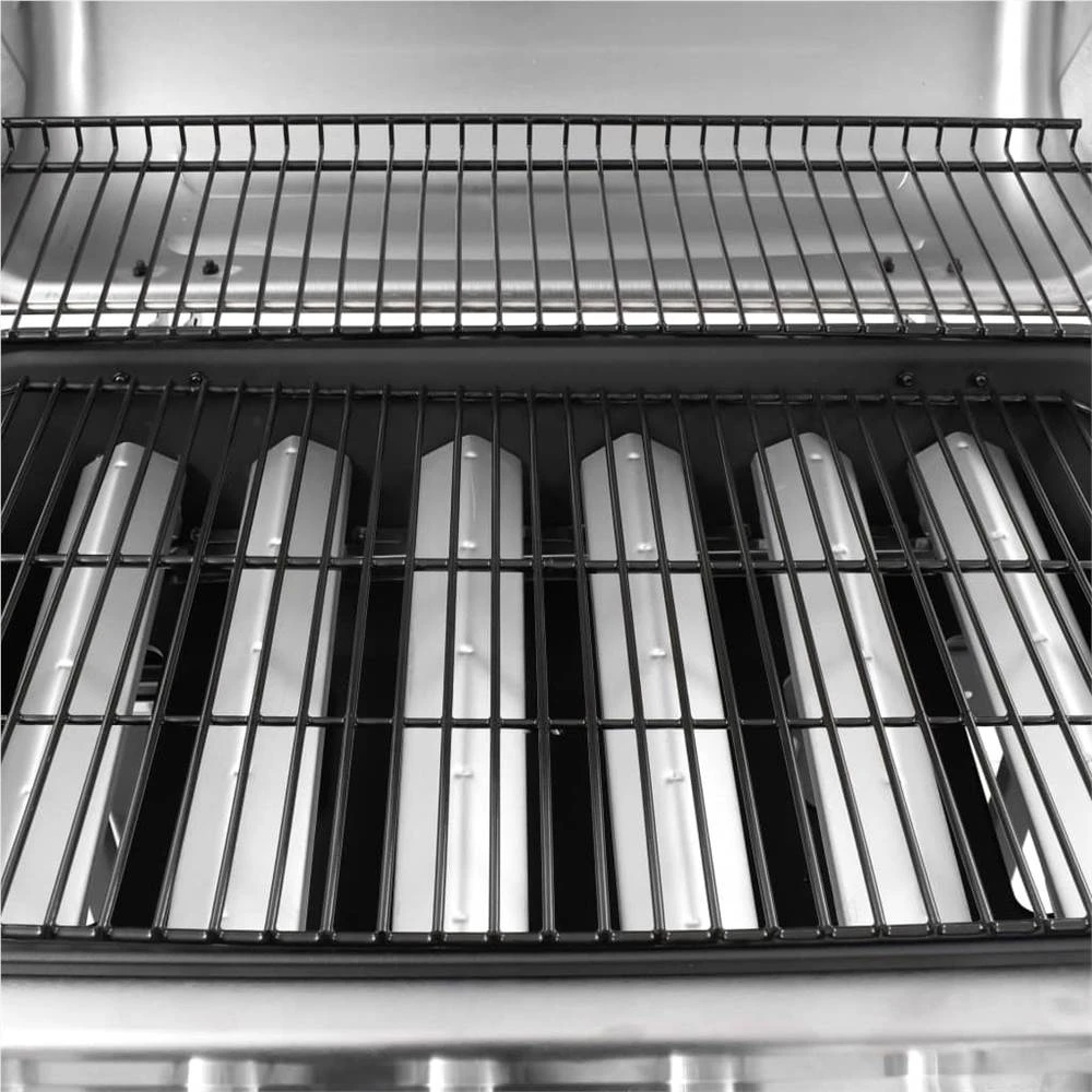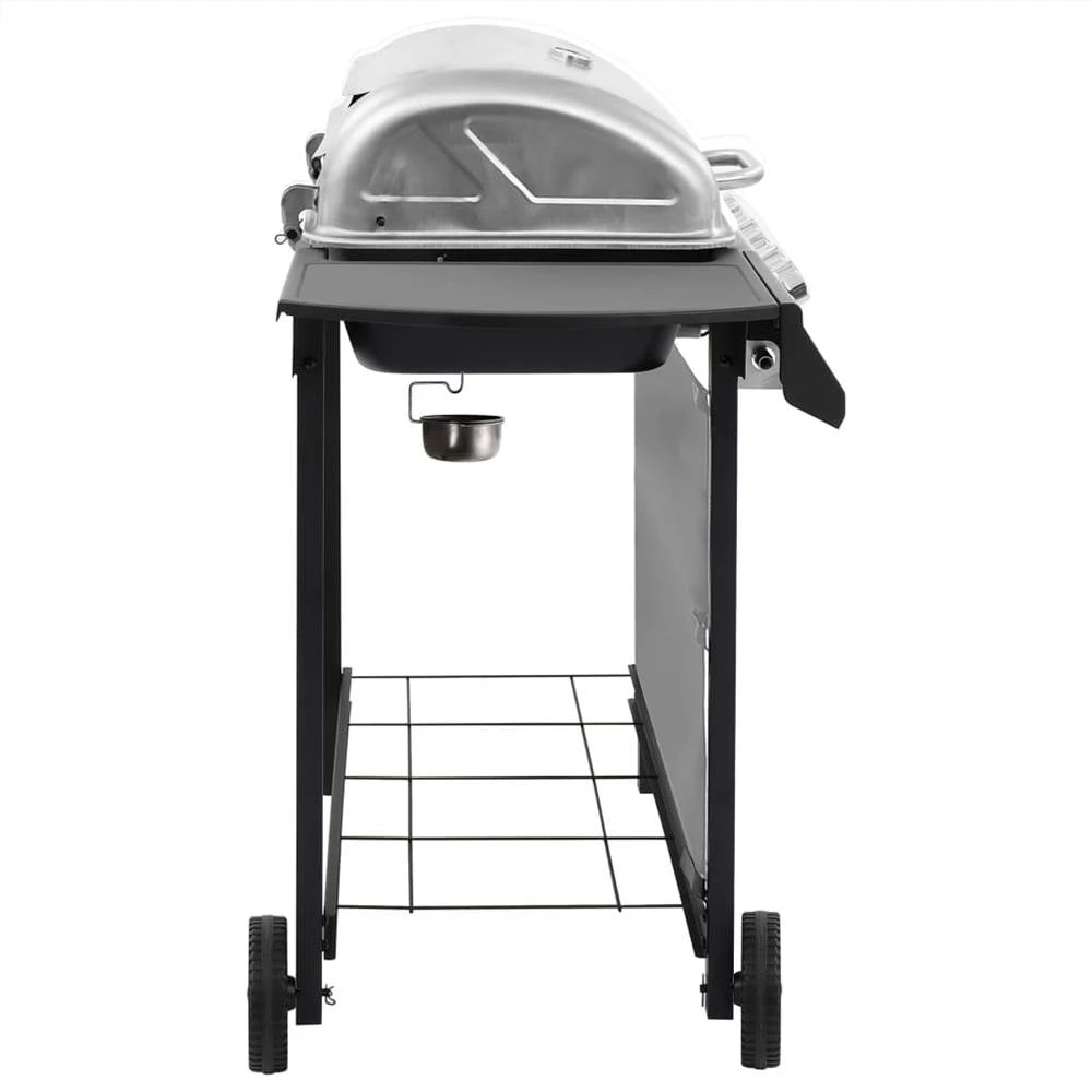 This gas BBQ grill, with 6 burners, is ideal for creating an outdoor feast for your family and friends. It will make your outdoor cooking experience sizzle, effectively turning your backyard into a second kitchen! The gas grill features a stylish and functional design. It has a large cooking surface and a heavy-duty hood with a built-in thermometer which accurately displays the cooking temperature. Side tables offer additional workspace for making sauces or your favourite side dishes. A removable grease drip container is also included, which is easy to clean. Made of heavy-duty materials, the grill is very durable. The shelf underneath provides large space to store cookware and utensils. Thanks to the 2 sturdy castors, the grill is easy to move around. Delivery also includes a BBQ cover to protect the grill from rain and dust. To connect the barbecue to the gas cylinder, a gas hose and a proper pressure regulator are required, which are not included in delivery.