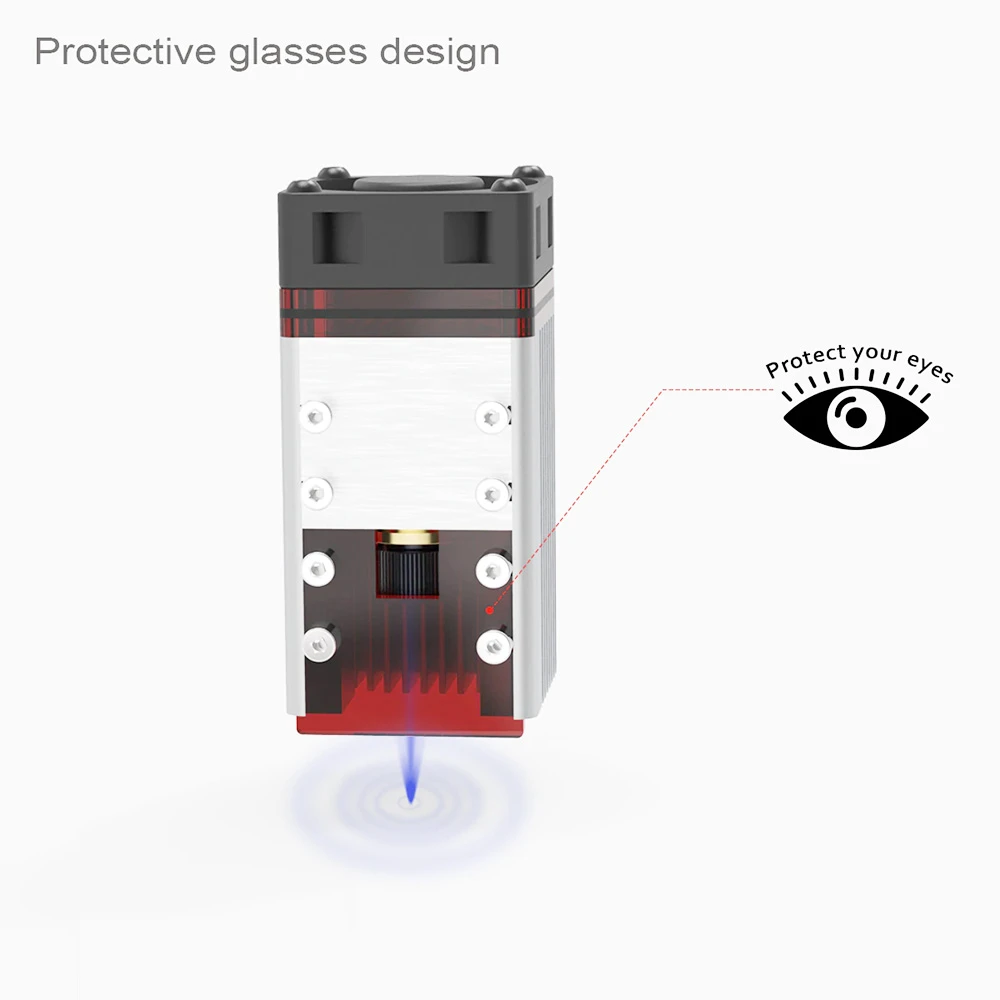 The laser beam is formed by combining two high-power laser diodes and adopts FAC technology. The minimum focus point reaches 0.05×0.05mm(N40630 module). Support NEJE advanced laser module, Built-in fast intelligent drive, temperature feedback can be timely, and intelligently adjust fan heat dissipation. Safe and quiet to use.
