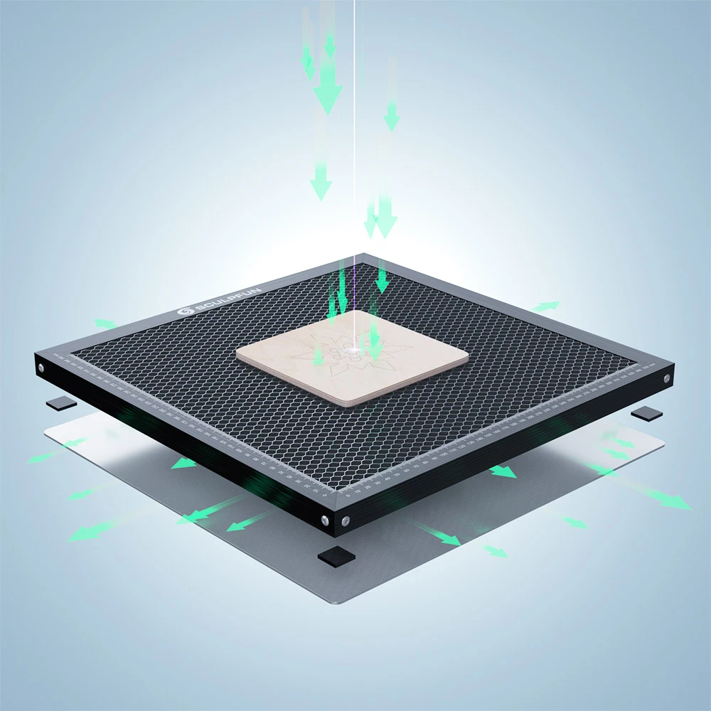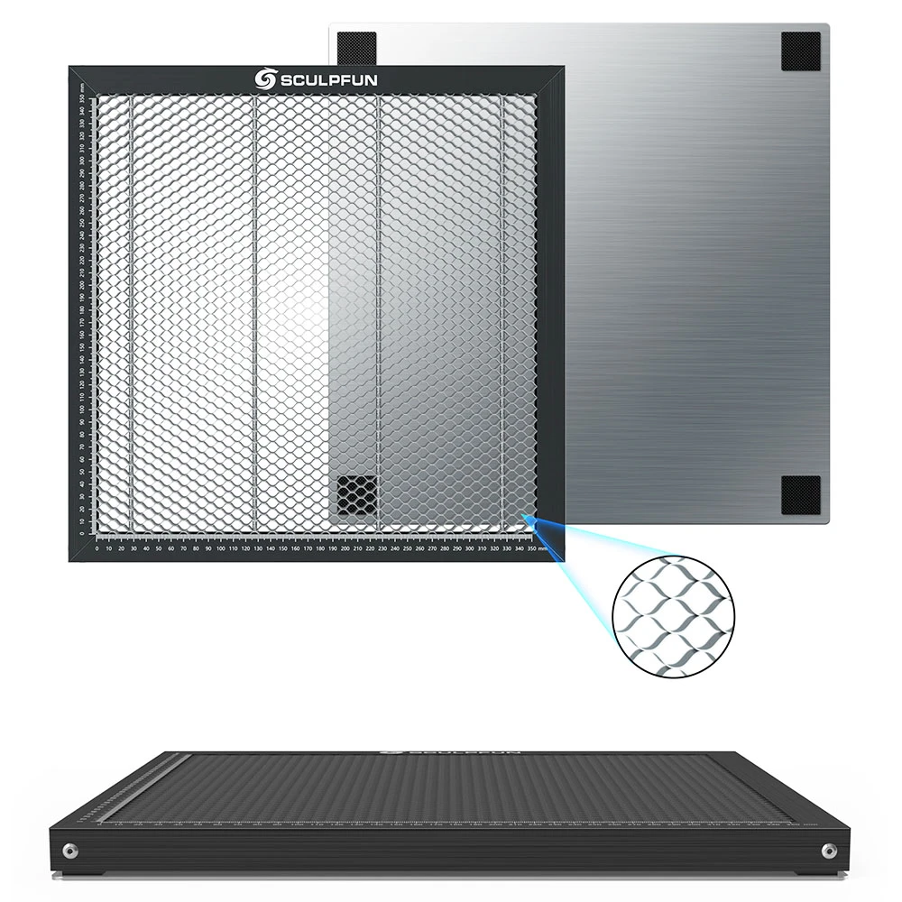 SCULPFUN honeycomb board is equipped with a metal desktop protection board, which can protect the table from laser damage, and is very suitable for many different diode laser engravers.