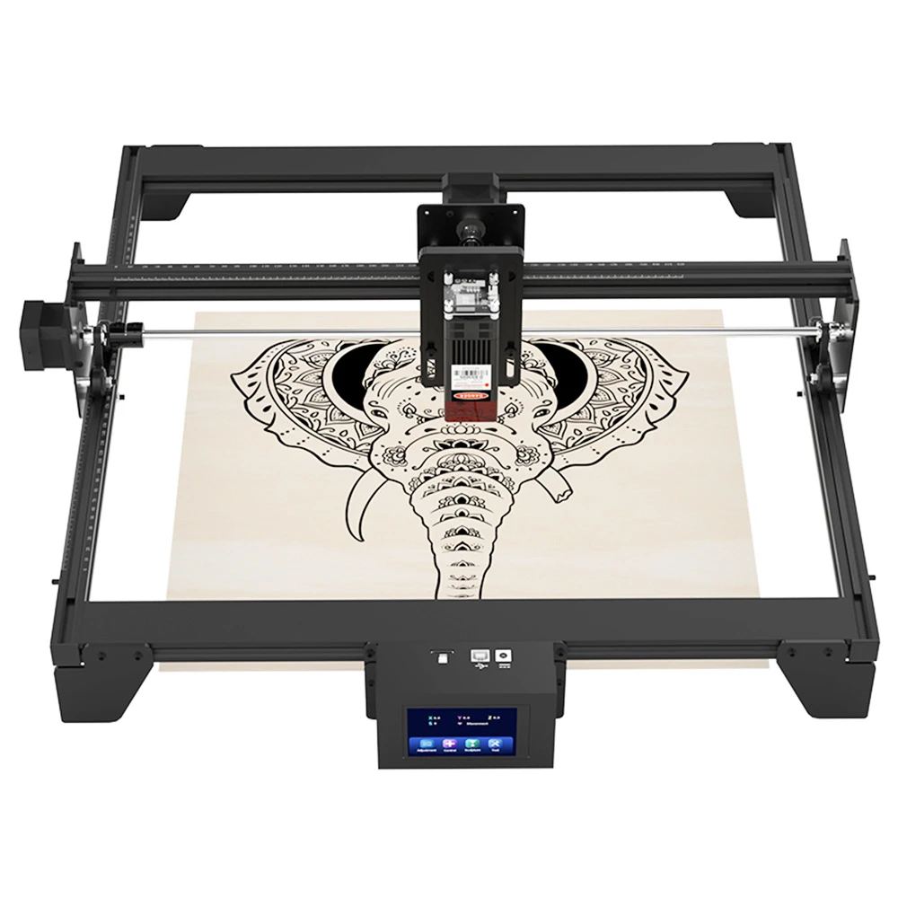 420 x 400mm large engraving area support carving various materials such as wood, plastic, paper bamboo, ox horn, leather, sponge paper, PCB board, aluminum oxide, non-reflective plating, and varnished metal. And it can be cutting paper, wood, cloth, leather as well.